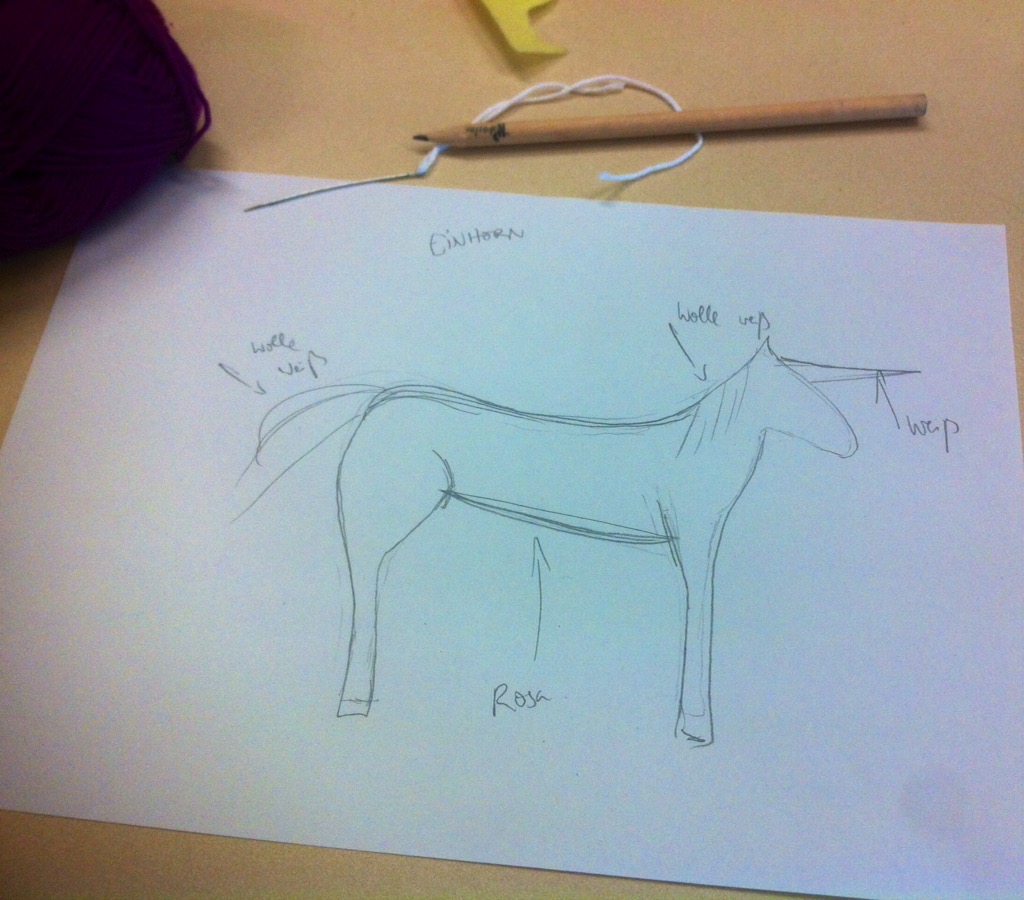 Schneide die Teile in den jeweiligen Farben einzeln aus, sie werden später zusammengenäht. auch solche Dinge, wie Schweif und Mähne werden einzeln vorbereitet und dann eingenäht.