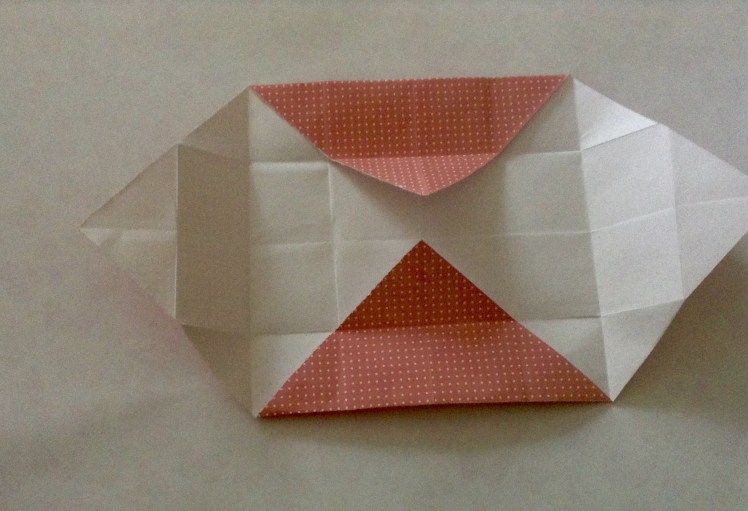 Schritt vier: nun die Vorder- und Hinterseite des Papieres jeweils zusammenfalten, so dass die Seitenteile sich öffnen und zur Vorder- und Hinterseite werden.