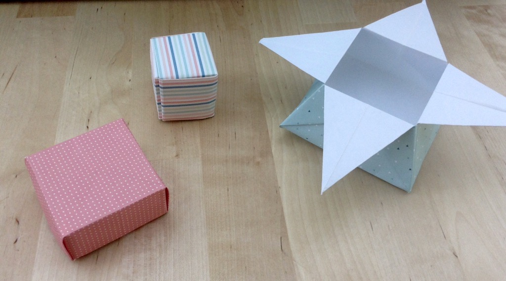 Heute mal eine Anleitung für drei verschiedene Arten von Schächtelchen, die schnell zu basteln sind. Man braucht eigentlich nur ein Stück weißes Papier und schon kann es losgehen!