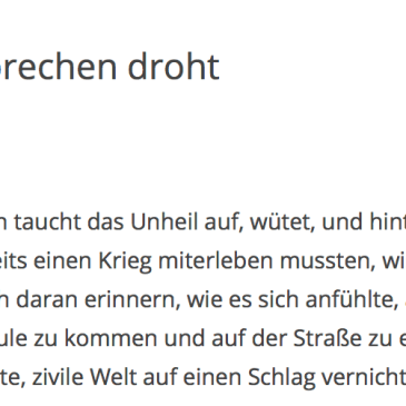 Am 11. Oktober erschien auf dem Blog 365 Tage dieser kleine, aber wie ich finde sehr feine Beitrag. Er kann in dieser Zeit ein Teil von etwas Größerem sein: das sich Hinstellen gegen den Hass und die Wut und die Ausgrenzung und Trennung, sich hinstellen und den Mund aufmachen und sagen: Nein, ich sehe das … Mehr Das Leben ist bunt