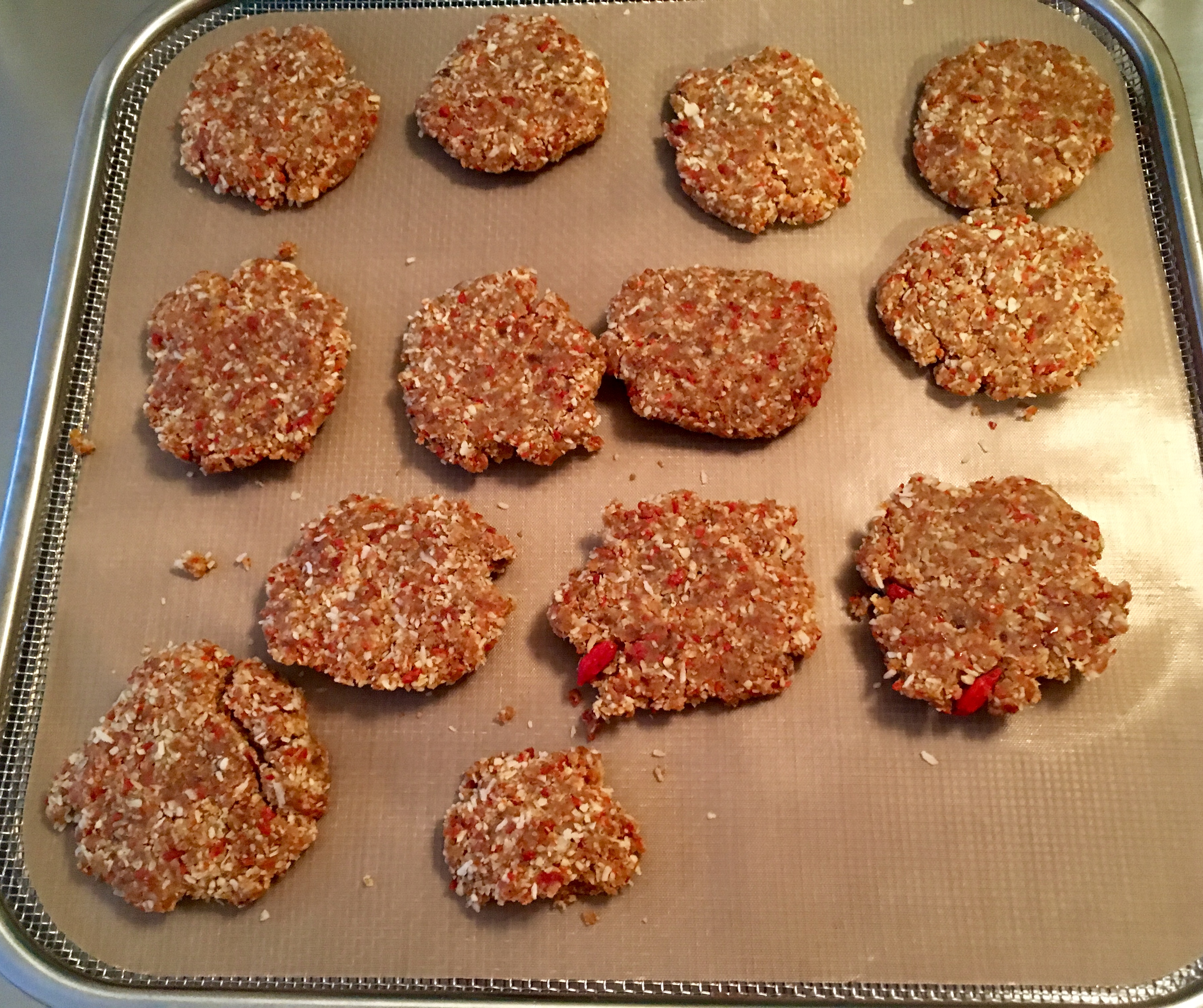 Dann der Gang in die Küche. Seit ein paar Tagen sind wir stolze Besitzer eines fancy Dörrautomaten und haben über Weihnachten viel damit herumprobiert. Heute morgen hole ich nun diese durchaus leckeren Macadamiakekse heraus. Nach einem Glas Wasser verkrümele ich mich wieder ins Bett und lese mein Buch zu Ende – Urlaub zu Hause ist herrlich!