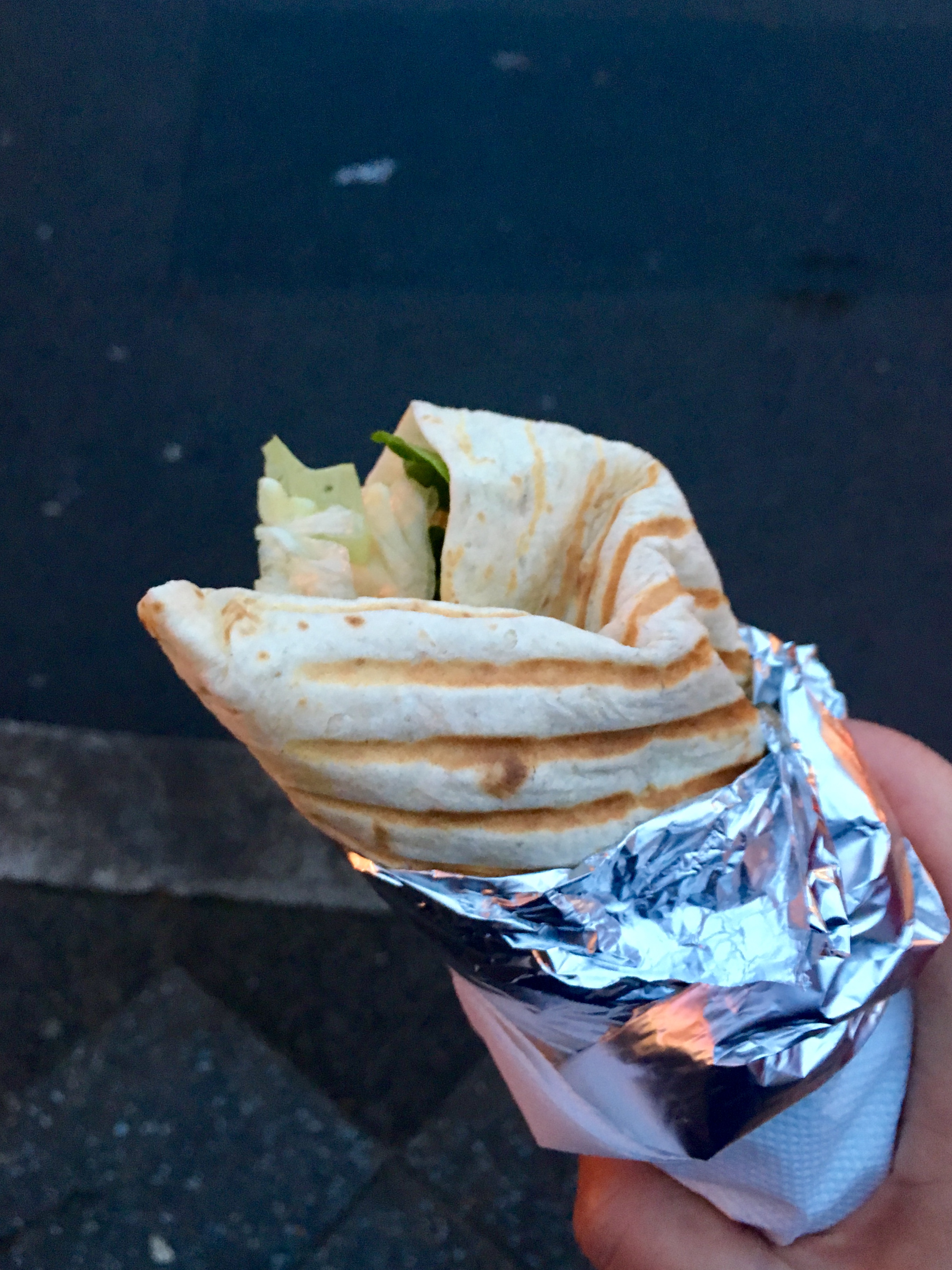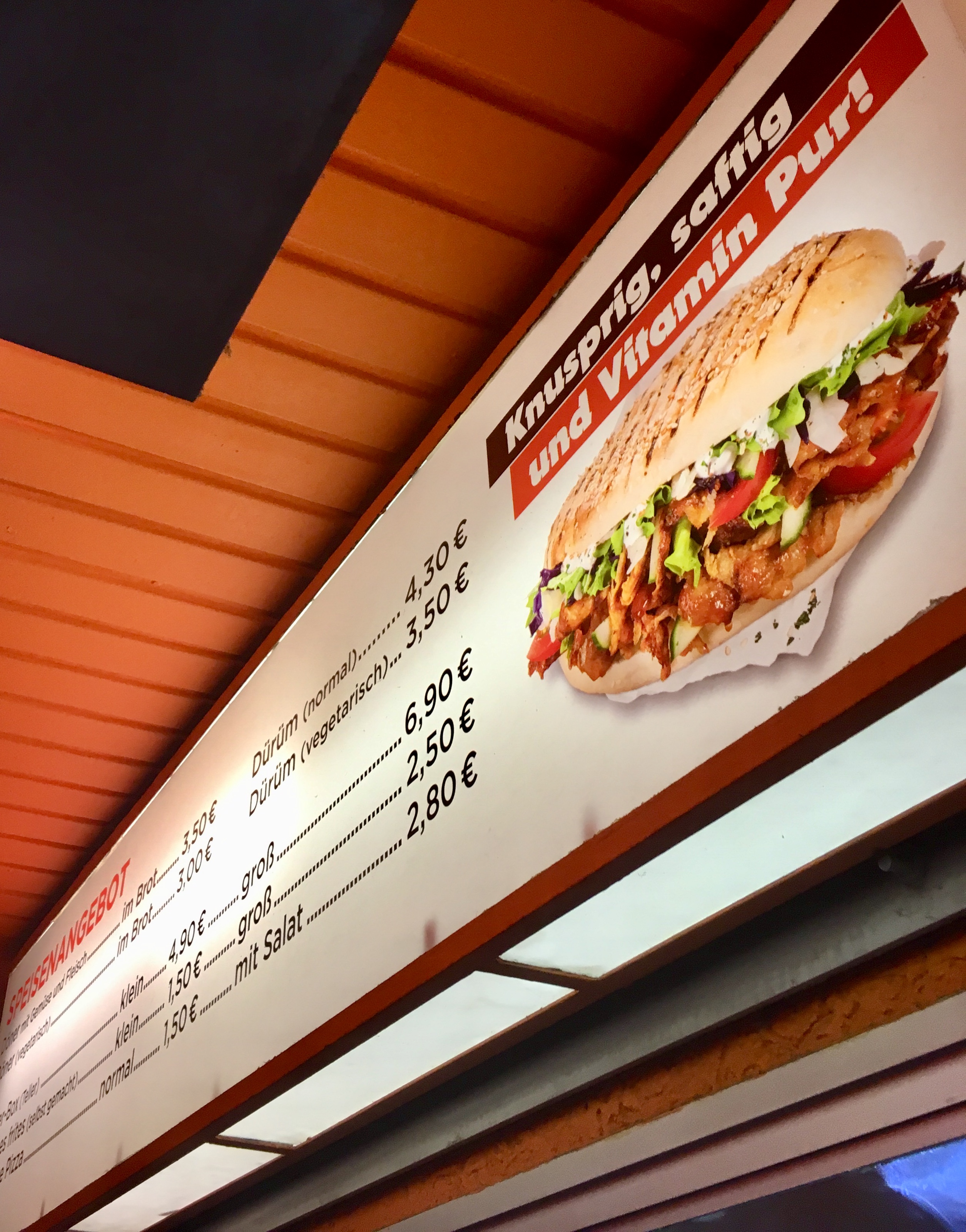 Sehr, sehr hungrig schleppen wir uns dann zu unseren Lieblingsdöner. Anschließend geht es noch kurz zu Lidl und dann – schon im Dunkeln – nach Hause.