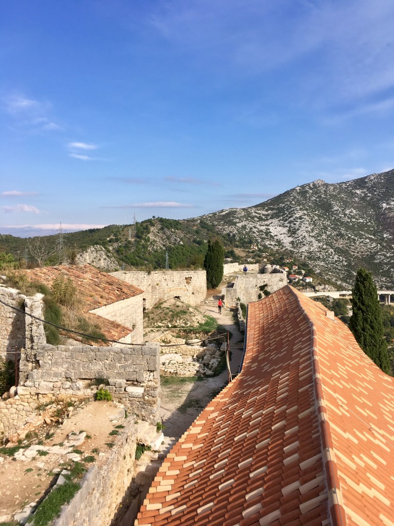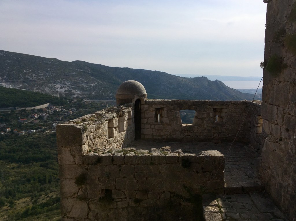 Da die Strasse durch einen Tunnel führte, der mir schon vor zwei Jahren nicht geheuer war, beschlossen wir den „Geheimweg“ zur Burg zu nehmen. Im Örtchen Klis, setzten wir uns auf eine Bank mit Panoramaausblick und ruhten wieder lange aus.