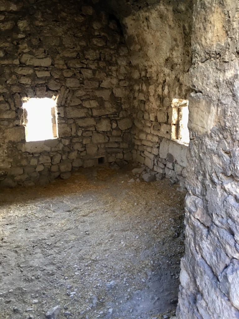 Bevor wir aber ganz in die Burg gingen, gönnte sich meine Mutter im darunter gelegenen Café einen Espresso und ich ging mit den Mädchen Baguettes, Humus, Trinken, Oliven und Cracker einkaufen. Damit gingen wir dann in die Burg und suchten uns ein gutes Plätzchen zum Picknicken.