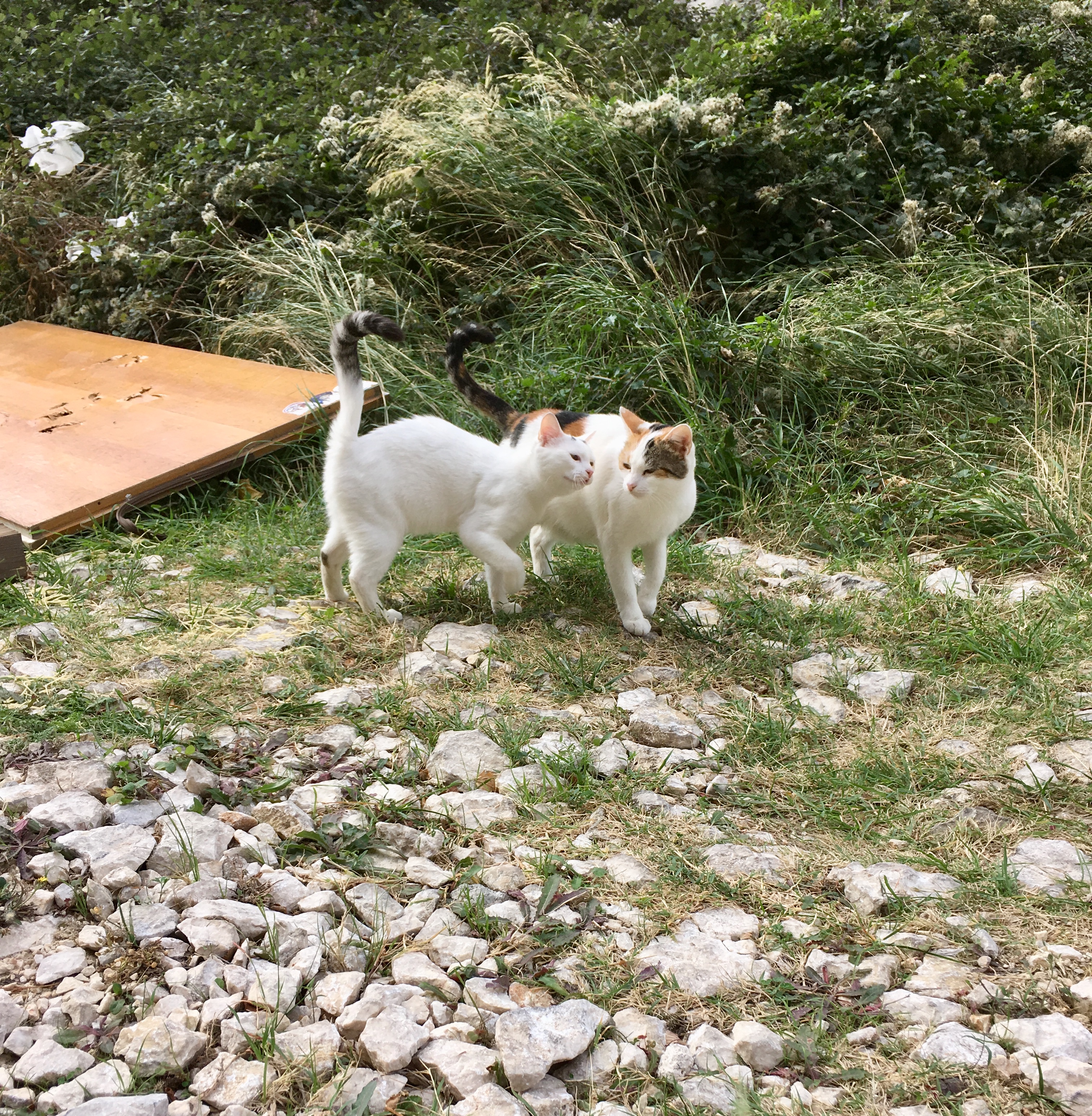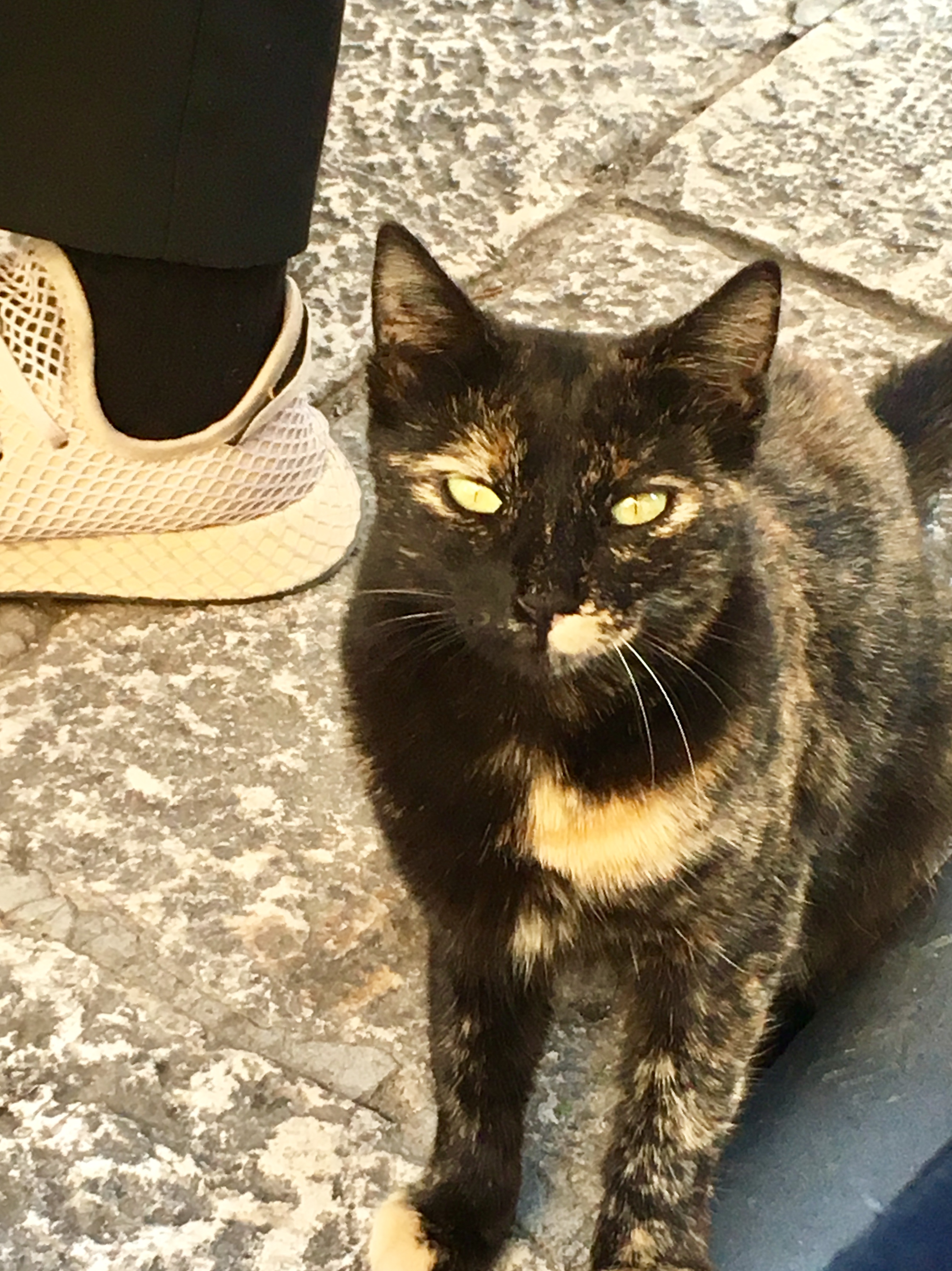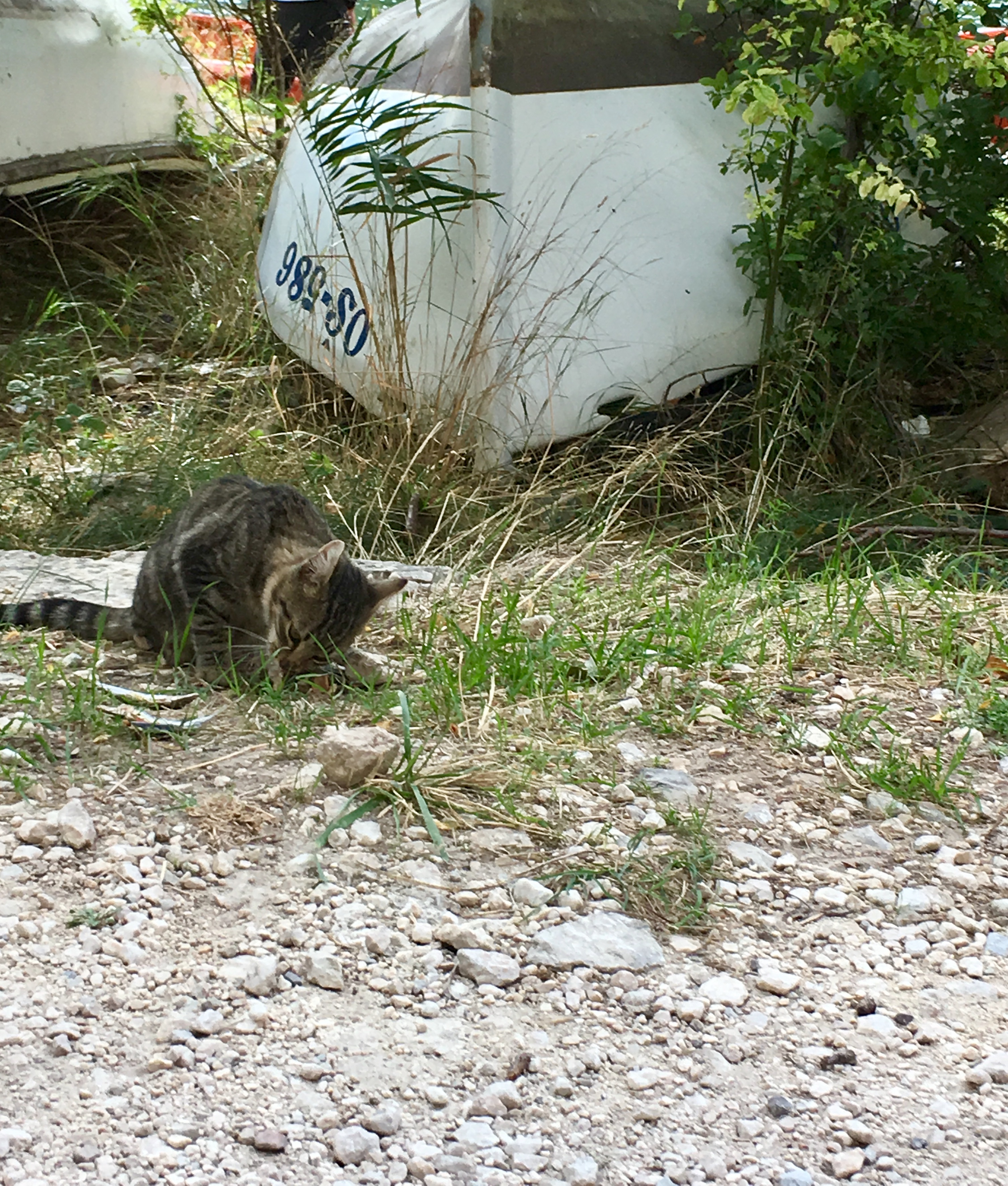 Wir liefen, nachdem wir die Burg bestiegen haben und meine Mutter dabei sehr viel Mut und Beweglichkeit bewiesen hatte, einmal am Fluss entlang und begegneten einigen Katzen, die dort auf Fischabfall hofften.