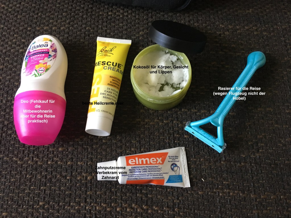 Das war’s. Ich versuche ja, die Dinge, die auf einer Reise brauche immer stärker zu minimieren, um mal mein Limit rauszubekommen. Ich glaube, für diese Reise habe ich immer noch relativ viel mit 🙂