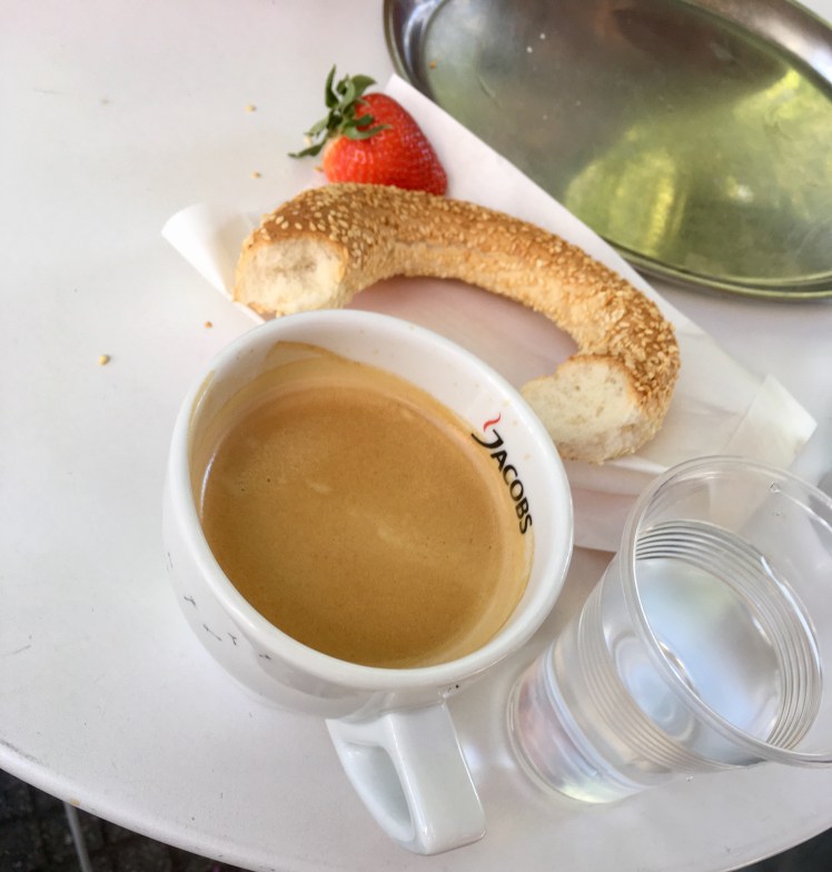 Nach dem Markt legten wir einen kleinen Zwischenstopp mit Kaffee und Sesamring und Erdbeeren an einer Straßenecke ein.