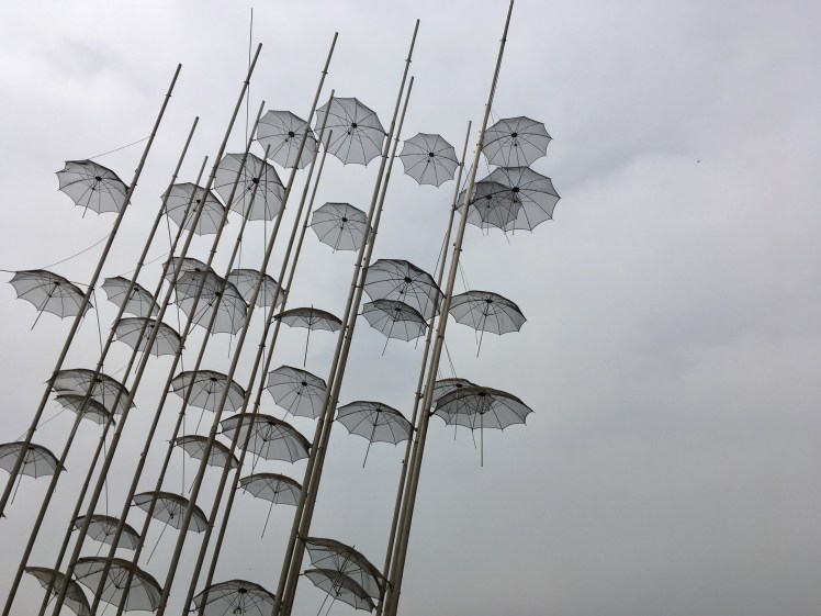 1. Sch;n wars mit euch, durch Saloniki spazierenzugehen. Besonders freute ich mich über das Foto mit den Schirmen des Bildhauers Giorgos Zongolopoulos. Ich hab mal darüber berichtet und zeige ein anderes Foto davon (nicht mein eigenes).. https://gerdakazakou.com/2016/01/03/griechische-kunst-zum-sonntag-die-schirme-von-giorgos-zongolopouloso/