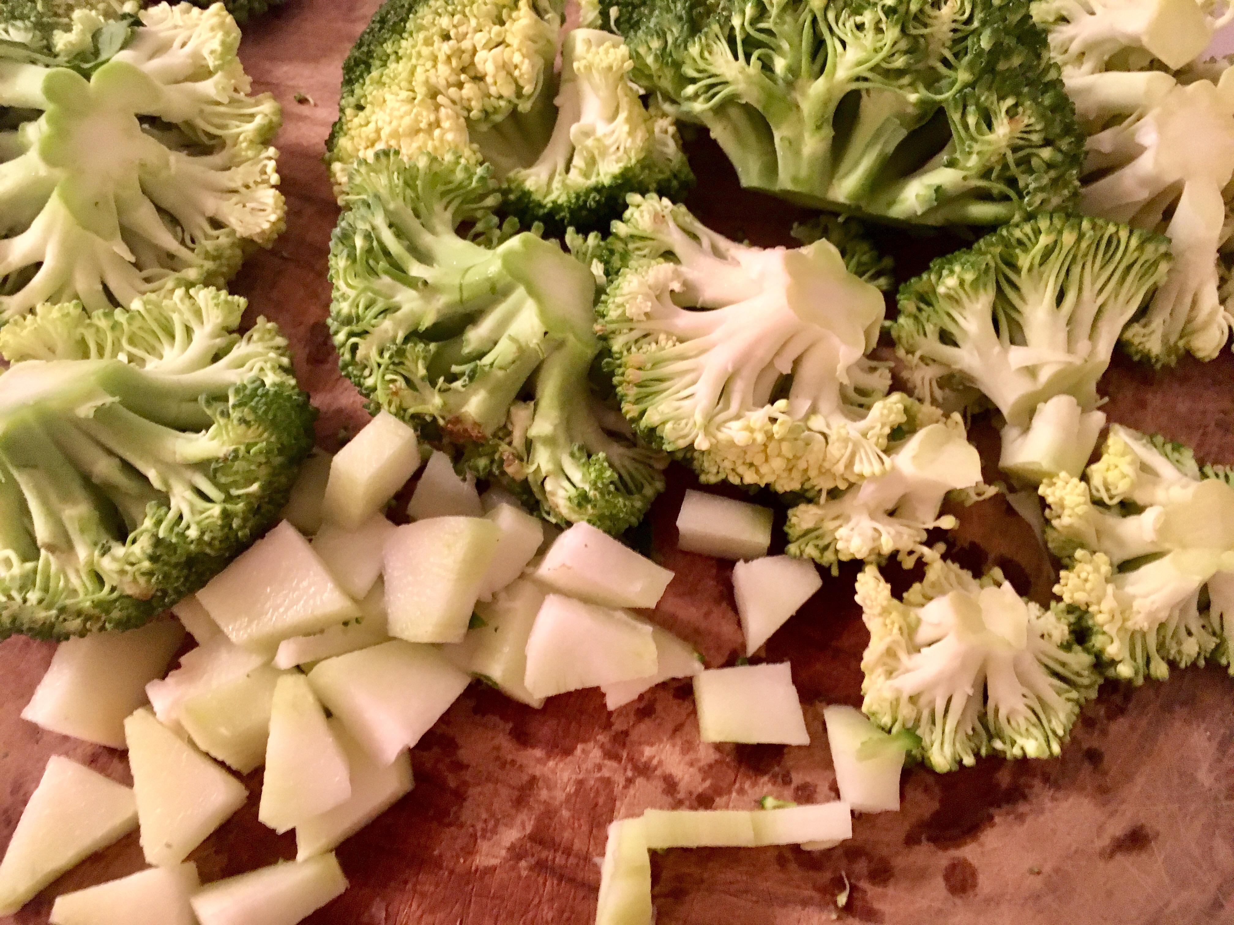- Brokkoli zerkleinern, Stiel schälen und klein schneiden.