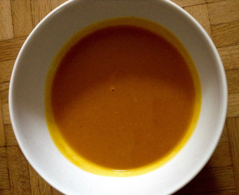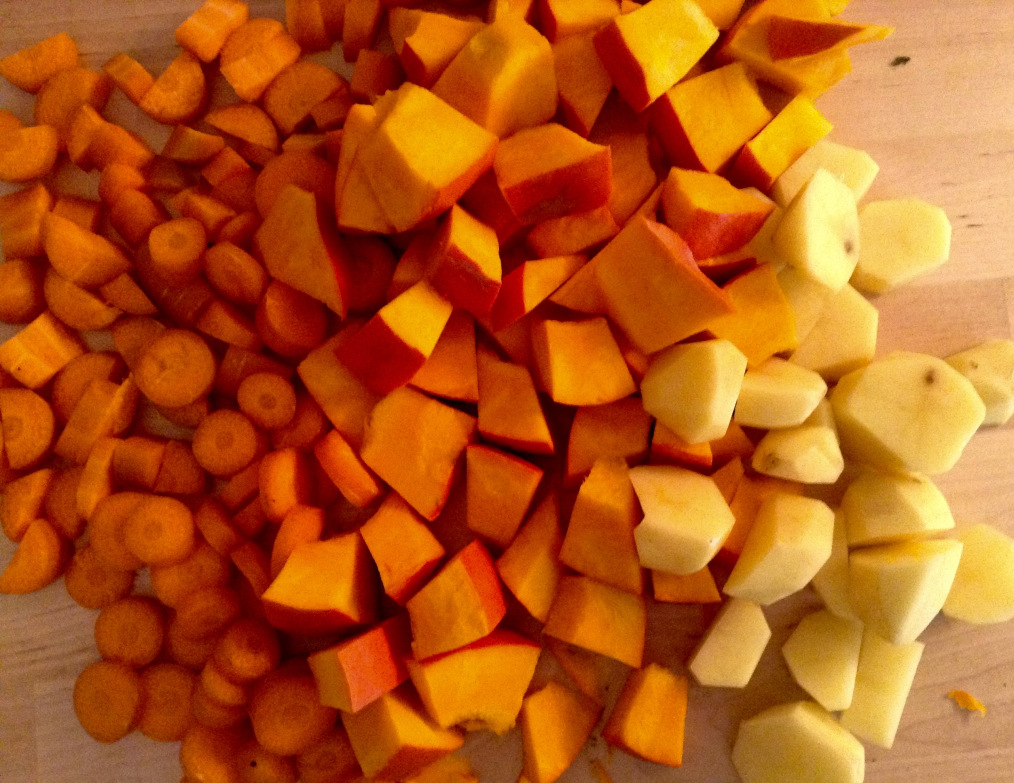 Aus Kartoffeln, Kürbis und Karotten läßt sich schnell und einfach diese Suppe kochen. Sie schmeckt sowohl warm als auch kalt, letzteres mir sogar besser!