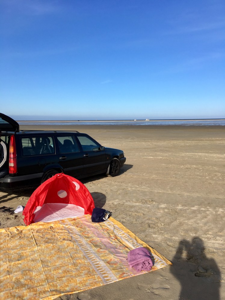 Nach drei Stunden füllte sich der Strand immer mehr mit Pkws und Wohnmobilen und wir fuhren zurück um Ferienhaus.