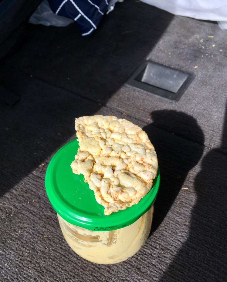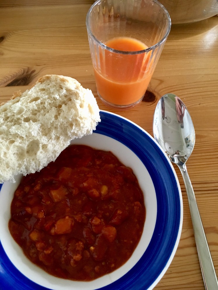Hier gab es eine Pause, in der ich vor allem puzzelte. Zum Mittag gab es Dosenessen: Chili sin carne.