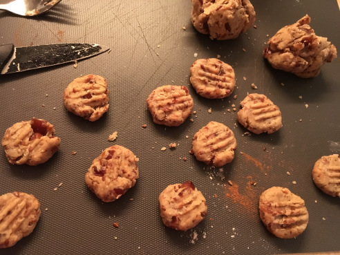 - Etwa 20 – 22 kleine Kugeln frommen und auf einem Backblech verteilen.