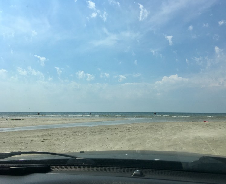 Danach ging es bei herrlichstem Wetter an den Strand. Die Flut kam gerade und wir parkten einige Male das Auto neu, um nicht vom Wasser eingeschlossen zu werden.