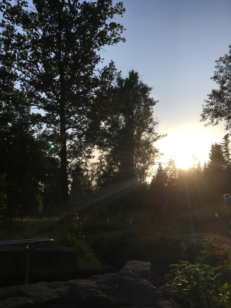 Eine beliebte Abendbeschäftigung ist das Wassertreten. Dies tun wir in einem Kneippbecken, welches im Park unterhalb der Reha liegt.