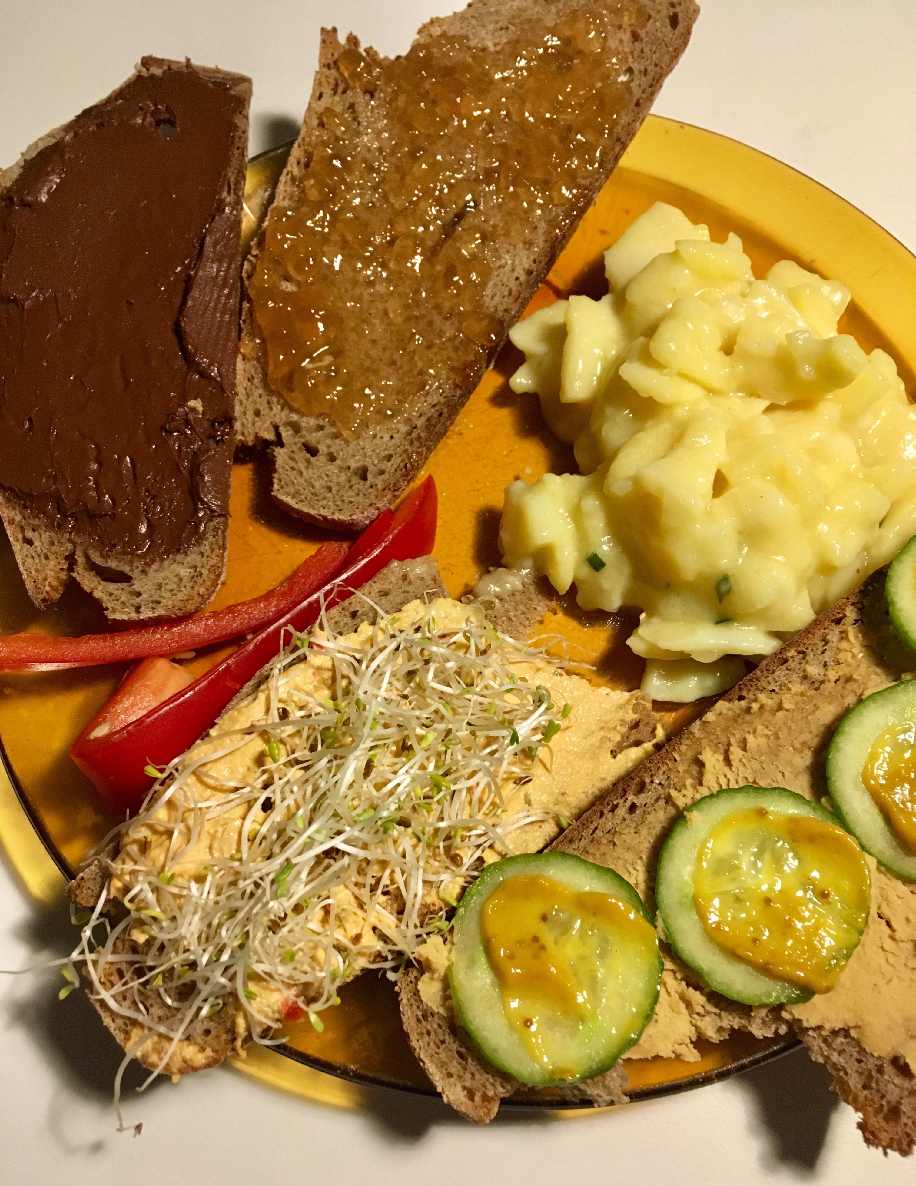 Am Abend, wieder zu Hause, machte ich mir dann ein Abendbrot, welches einen Freund dazu brachte, mich zu fragen, ob ich schwanger sei. War und bin ich nicht … ich glaub ich mag einfach merkwürdige Kombis beim Essen.