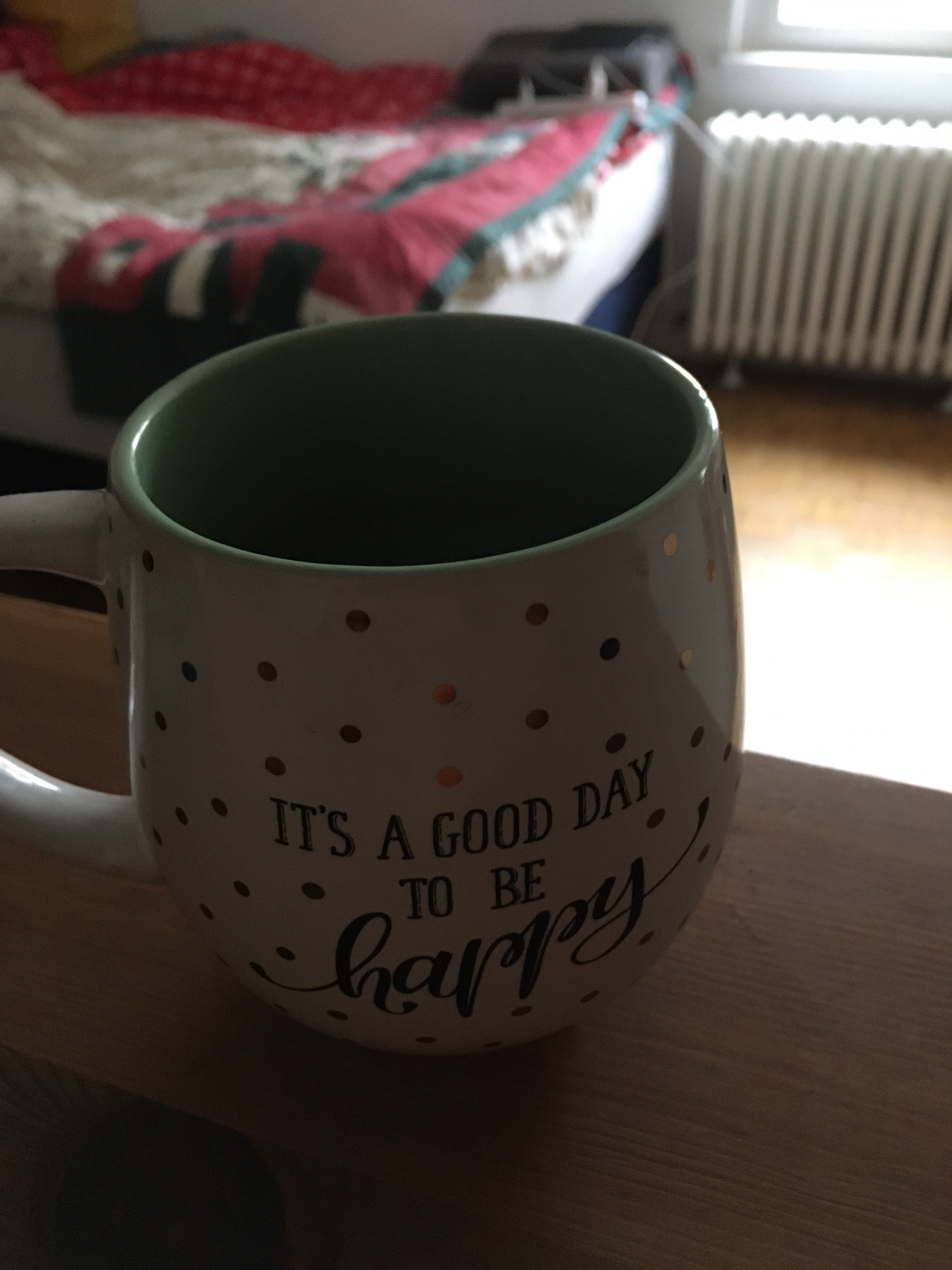Dann habe ich in den letzten Tagen noch Wartezeiten auf die Mitbewohnerin mit Essen und Trinken überbrückt. Einmal gab es beim Kieferorthopäden einen Kaffee aus schönem Geschirr…
