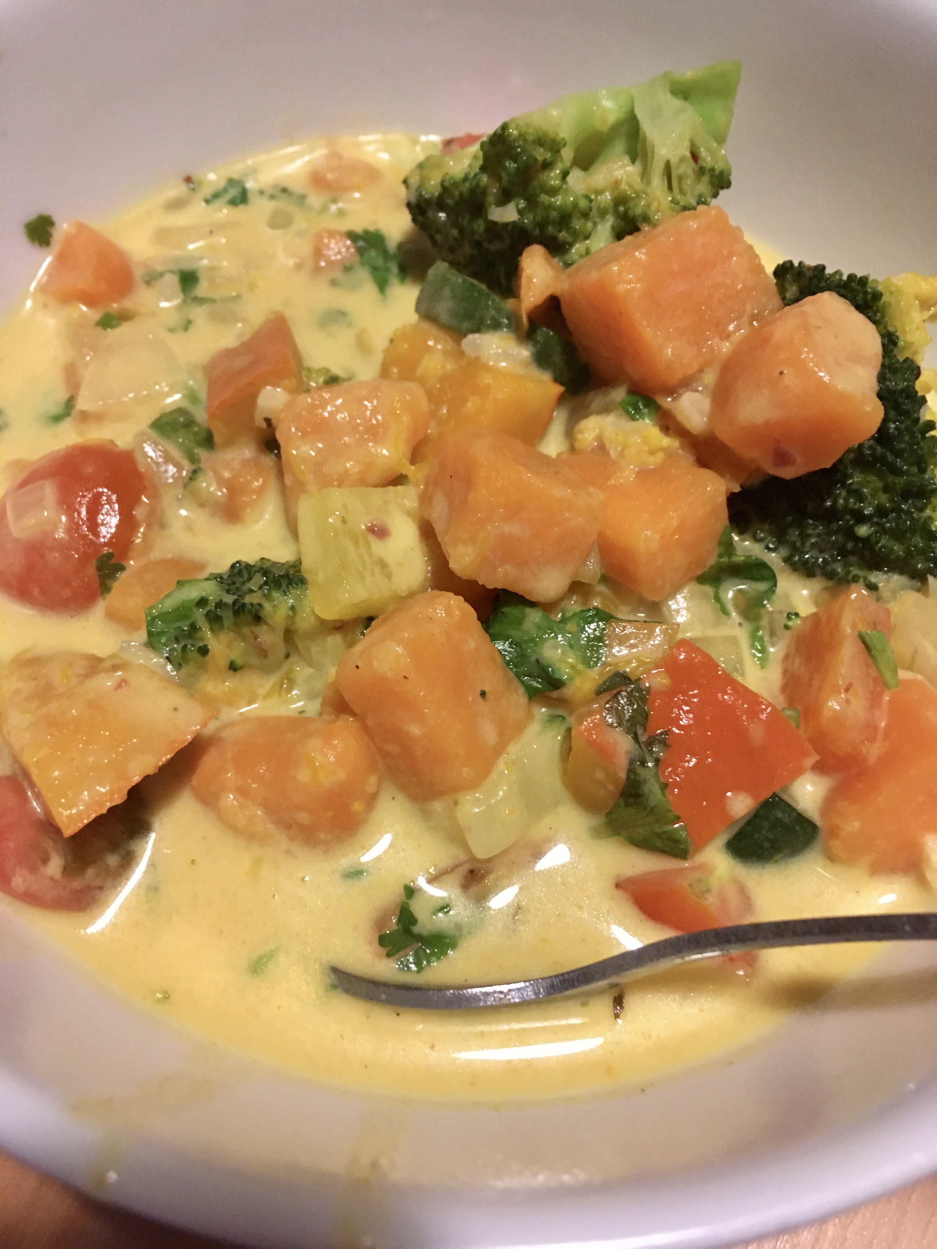 Und dann wieder eine Gemüse-Kokosmilch-Curry Variation.