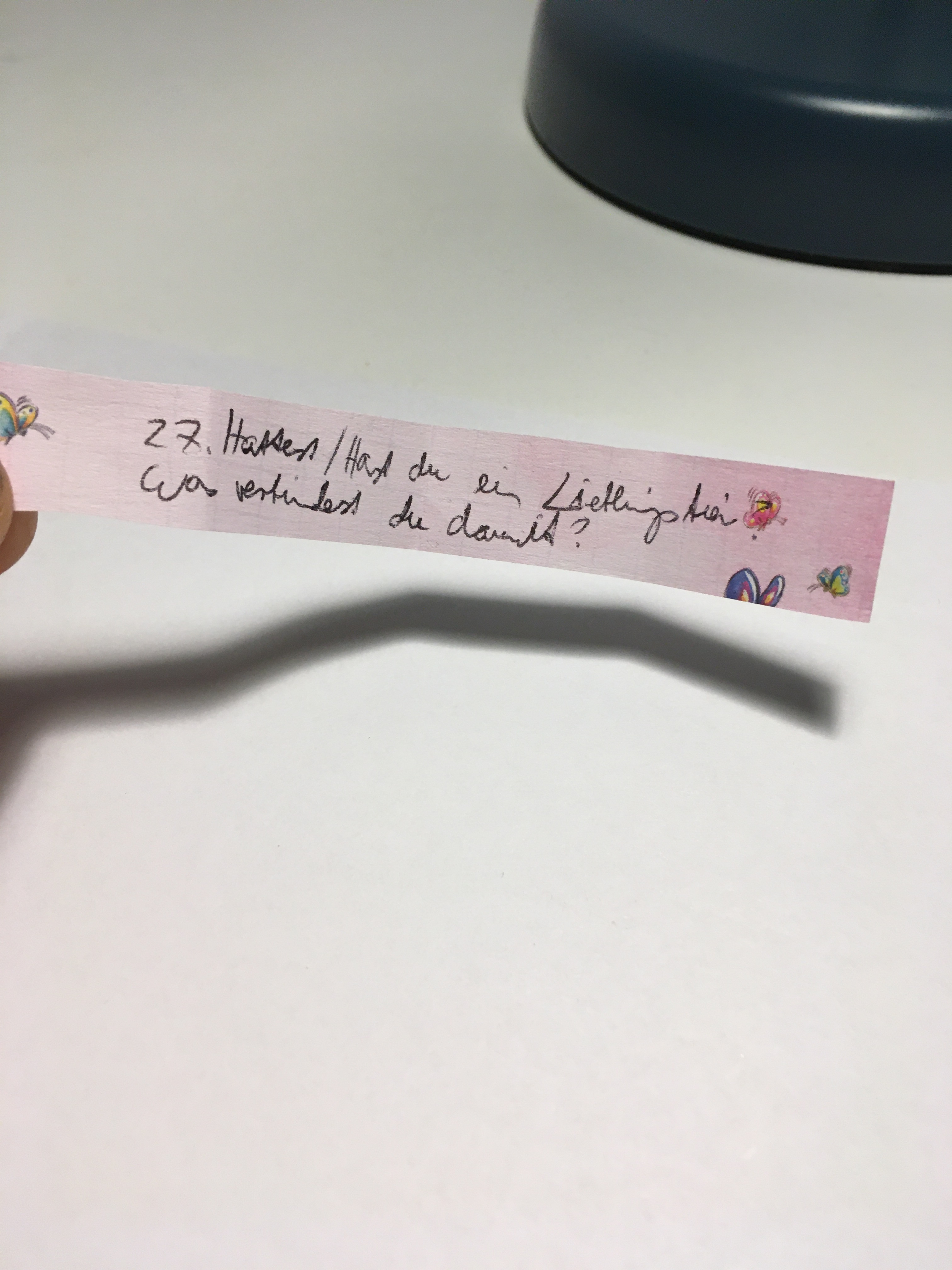 Und weil ich ein sehr neugieriger Mensch bin, habe ich gleich mal einen Zettel gezogen.