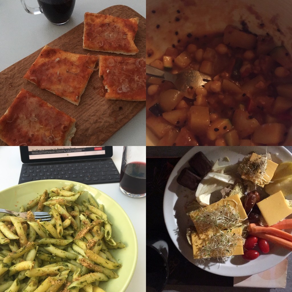 Zum Abendessen gab es entweder halb selbstgemachte Pizza, Reste vom Mittag oder Brot.