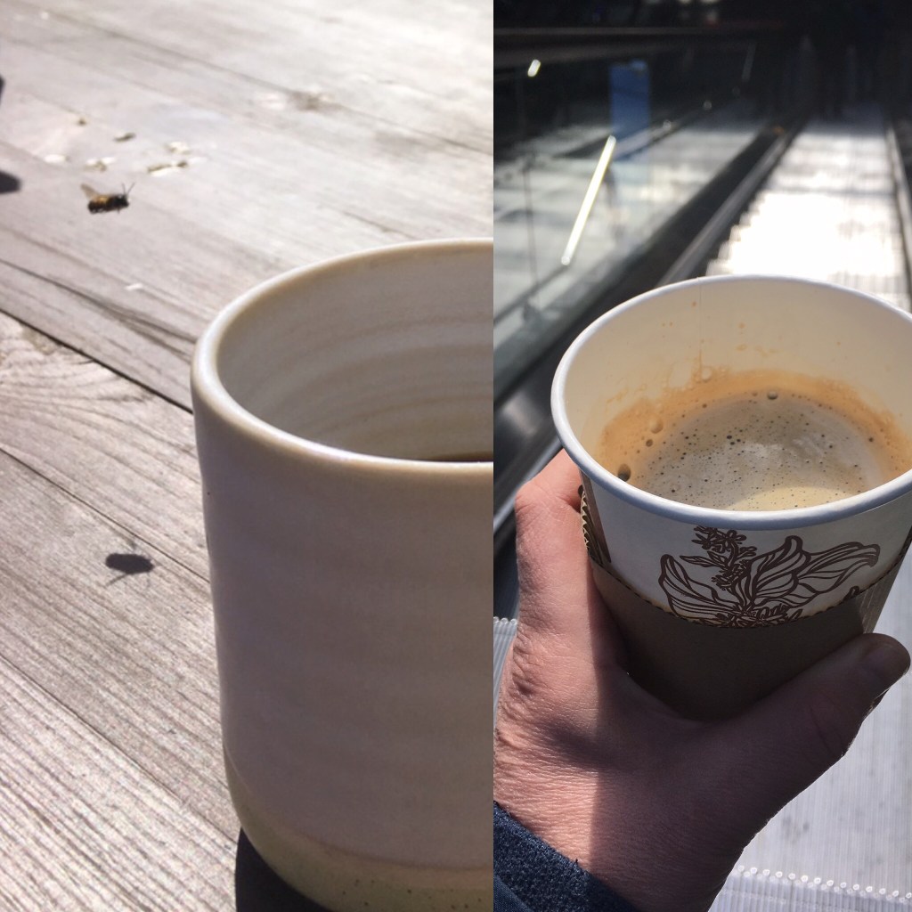 Neben den obligatorischen Radlern zum Picknick und dem ein oder anderen Wein zum Abend gab es viel Kaffee in diesem Monat. Einmal auch einer to go und einmal einer mit Bienenbesuch. Sonst trinke ich eigentlich nur Wasser.