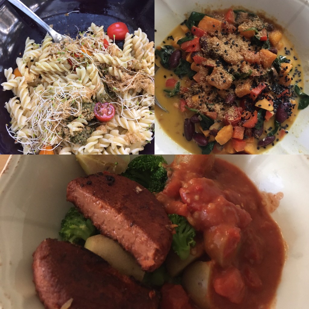 Zum Mittag gab es meist die üblichen Verdächtigen Nudeln und Curry, aber auch klassische Mahlzeiten, wie Kartoffeln, Brokkoli und Boulette. Ich hatte diesen Monat definitiv oft Lust auf sogenannte Ersatzprodukten, wie diese Burgerpatties.