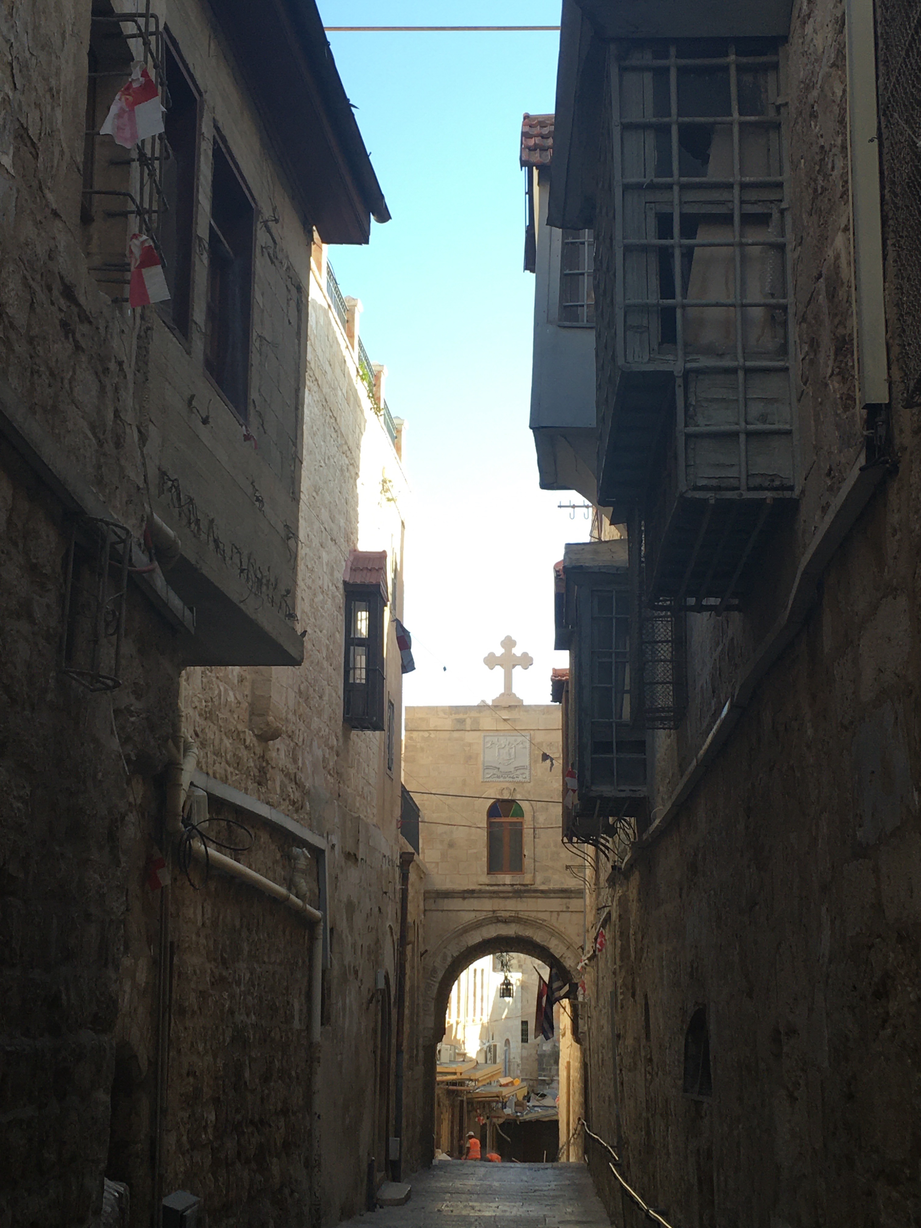 Ich lief also etwas durch das christliche Viertel und spürte sogleich das Alte der Altstadt – kleine verwinkelte Gassen schlängeln sich hierhin und dorthin. Mein Ziel war die Grabeskirche, die bei den Erzählungen im Reiseführer so spannend erschien, sollten es doch eigentlich 32 Kirchen, Kapellen und Altäre auf verschiedenen Ebenen sein und dazu noch ein äthiopisches Dorf auf dem Dach – das musste ich mit eigenen Augen sehen.
