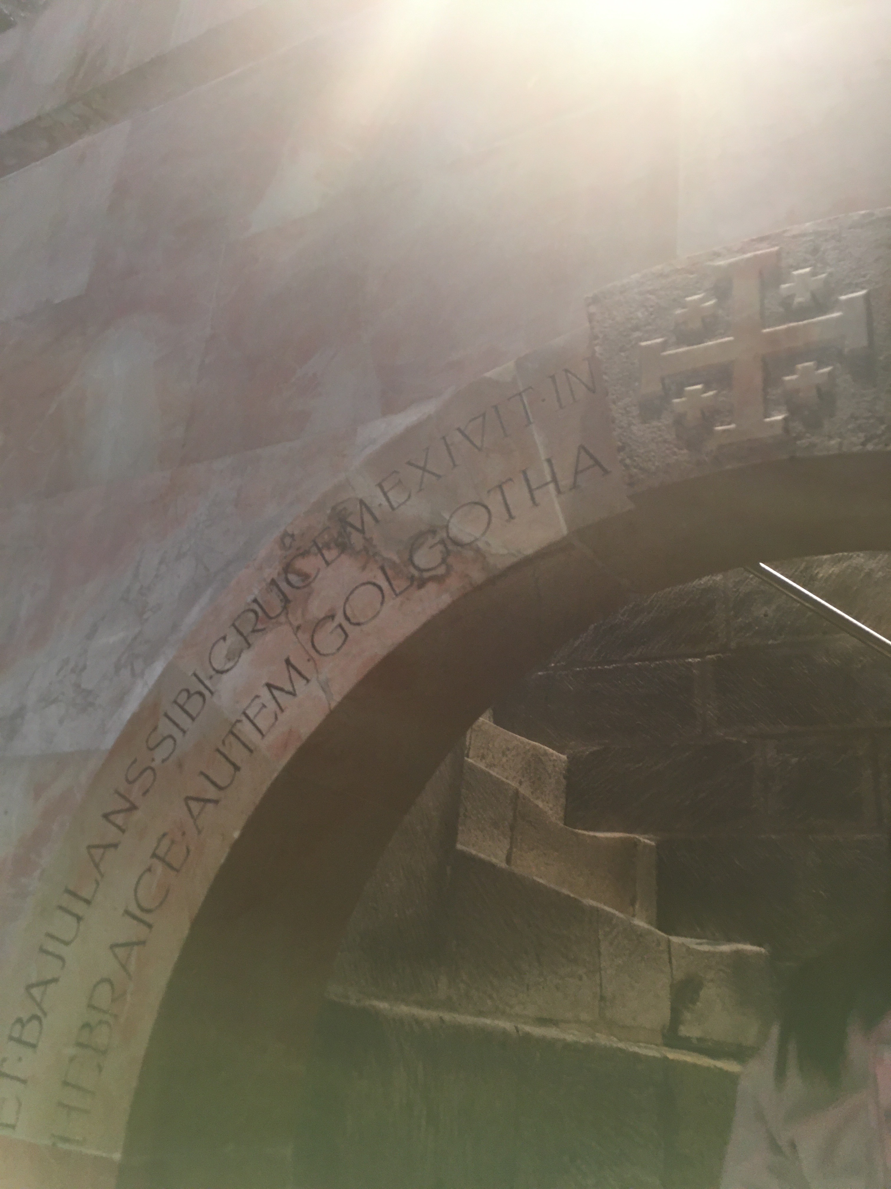 Als ich die Kirche betrat, bog ich intuitiv erstmal gleich links ab und erklomm die steile Treppe. Auf dem Torbogen über der Treppe stand Golgatha und da wurde mir erst wirklich klar, wo ich hier bin. Etwas ehrfürchtig ging ich nach oben und staunte über alles, was ich sah.