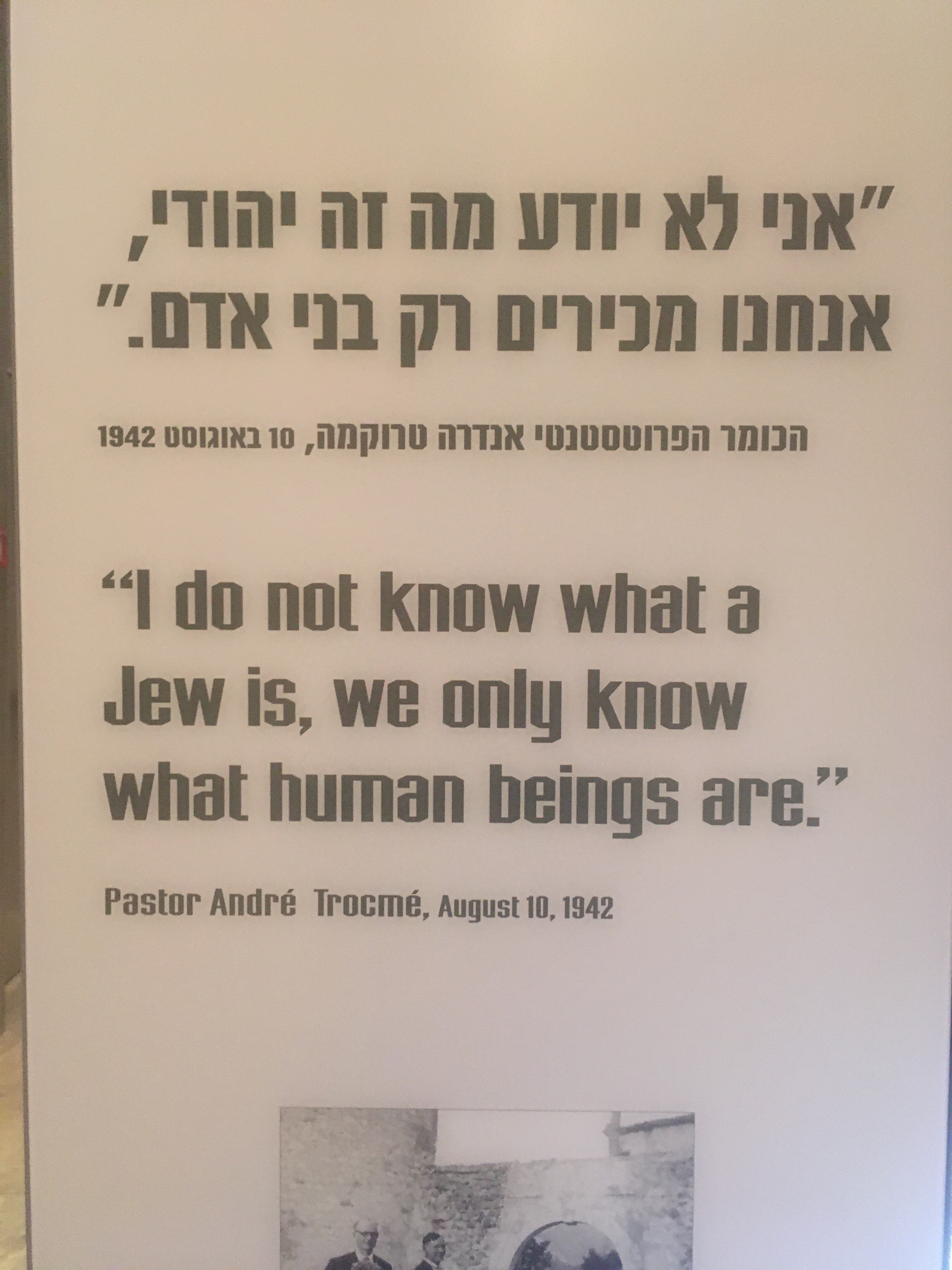 Dann war ich soweit und ging in das Museum zur Geschichte des Holocaust. Die Ausstellungsräume liegen größtenteils unterirdisch. Das Gebäude ist in Form eines Keils gebaut und bohrt sich quasi durch den Berg, nur die oberste Kante schaut in Form eines Tageslichts aus dem Berg heraus. Von diesem Keil gehen rechts und links Räume ab, die man im Zickzack begehen kann. Sehr langsam und ausführlich wird die Geschichte von der Zeit nach dem ersten Weltkrieg beginnend, erzählt und gezeigt. Ich habe noch nie eine so umfassende Ausstellung zu dem Thema gesehen und auch wenn ich vieles dazu weiß, hat mir die Art der Aufbereitung wieder einmal neue Eindrücke und Erkenntnisse verschafft.