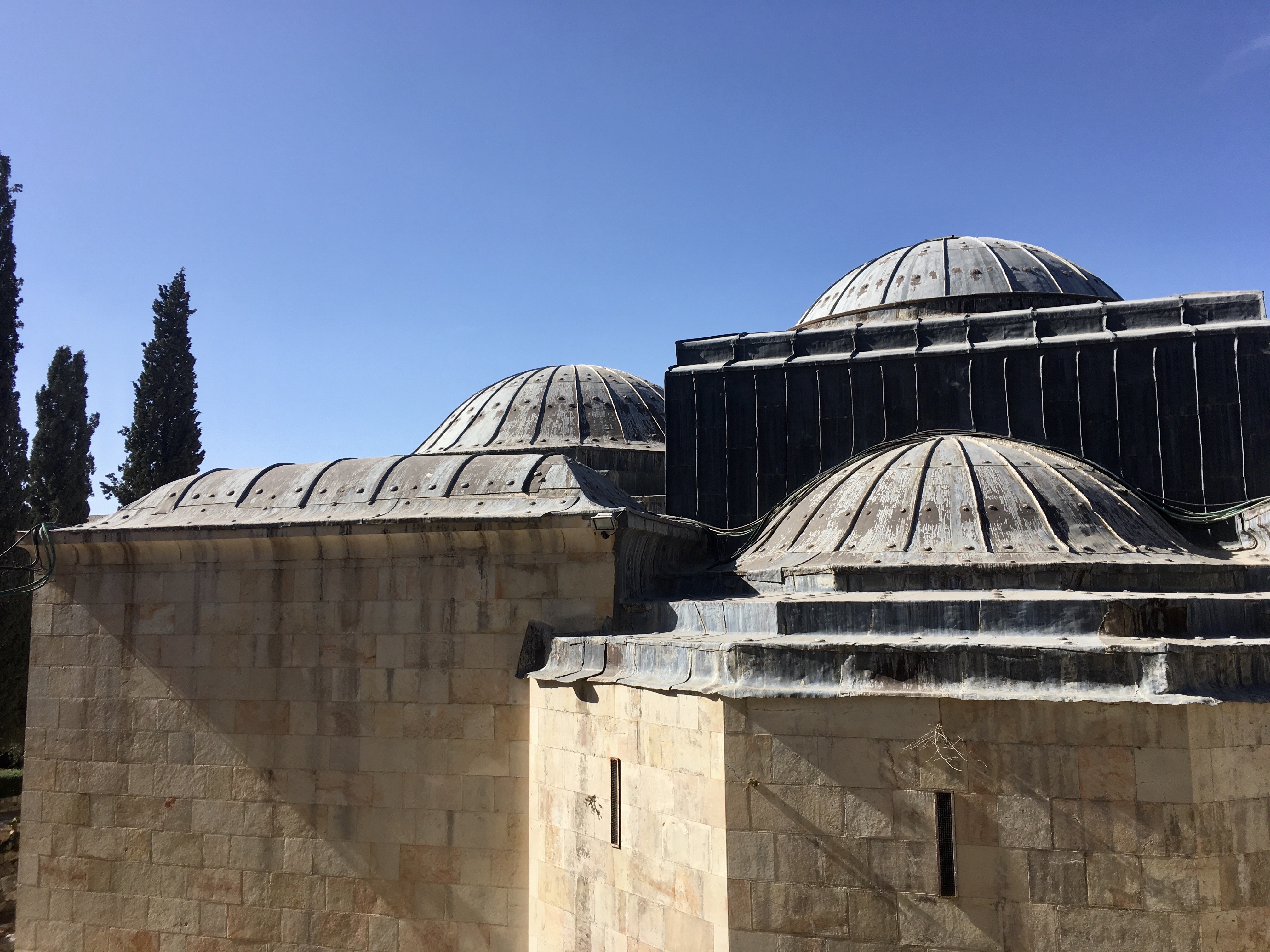Dann ging es weiter zum Ölberg. Ich kam nun von oben zu ihm und der erste Ort, den ich mir anschaute war die Kapelle der Himmelfahrt. Am Ölberg, so die Geschichte, die sich alle drei Religionen hier erzählen, werden am jüngsten Tag zwei Brücken das Tal überspannen, an dessem anderen Ende Gott als Richter sitzt. Über die eine Brücke, die aus Eisen gemacht ist, gehen alle Sünder und stürzen ab, über die andere aus Papier alle guten Menschen und gelangen so in den Himmel. Damit sie ganz nah am Ort des Geschehens sind, entstand hier nach und nach ein riesiger jüdischer Friedhof und eben die Kapelle der Himmelfahrt, neben der direkt die Moschee dazu steht.