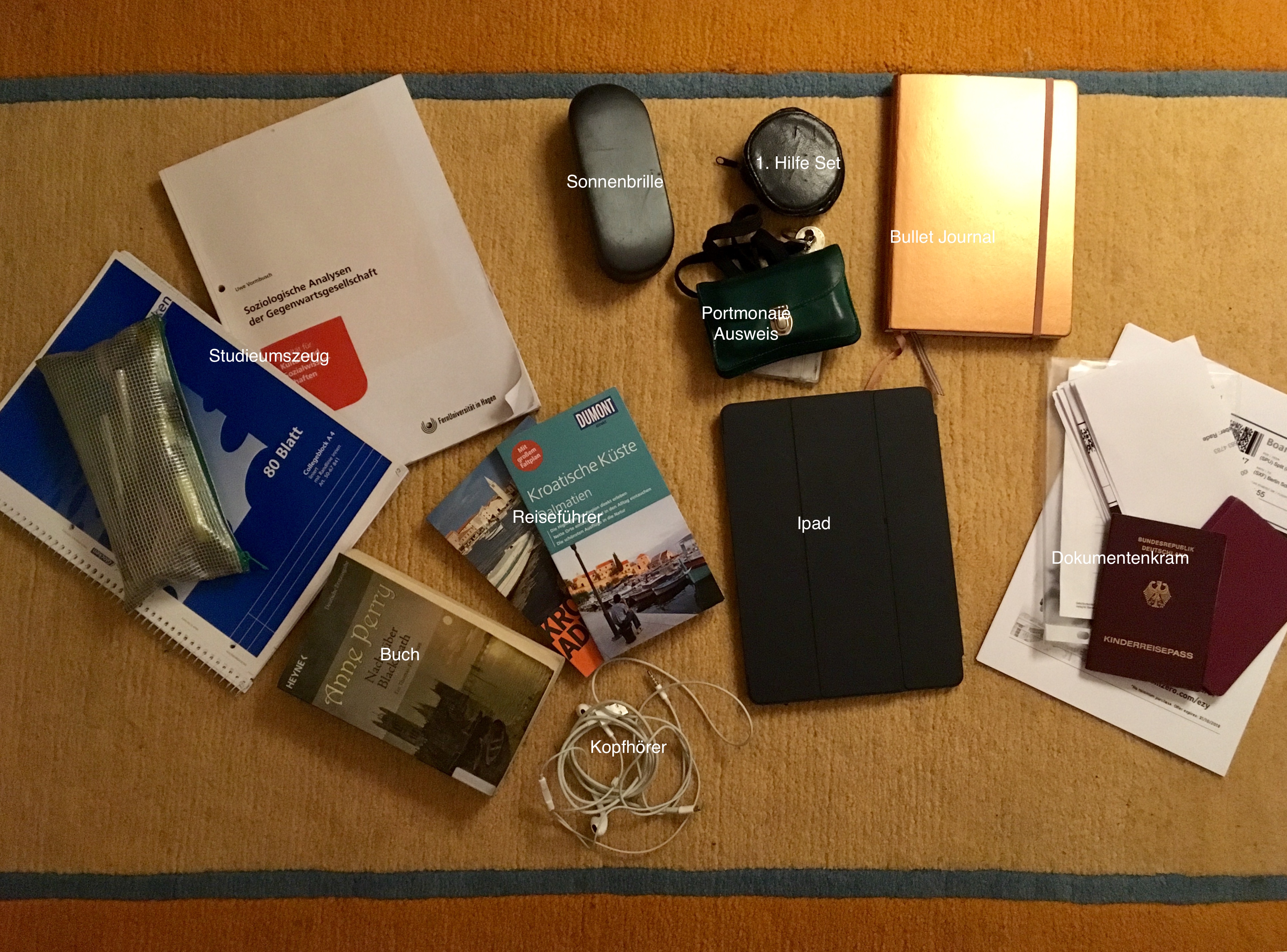 Mit derart leichtem Gepäck reist es sich gut und einfach. Die Mitbewohnerinnen und ich wurden netterweise vom Mitbewohner zum Flughafen chauffiert und trafen uns dort mit meiner Mutter und der Großen.