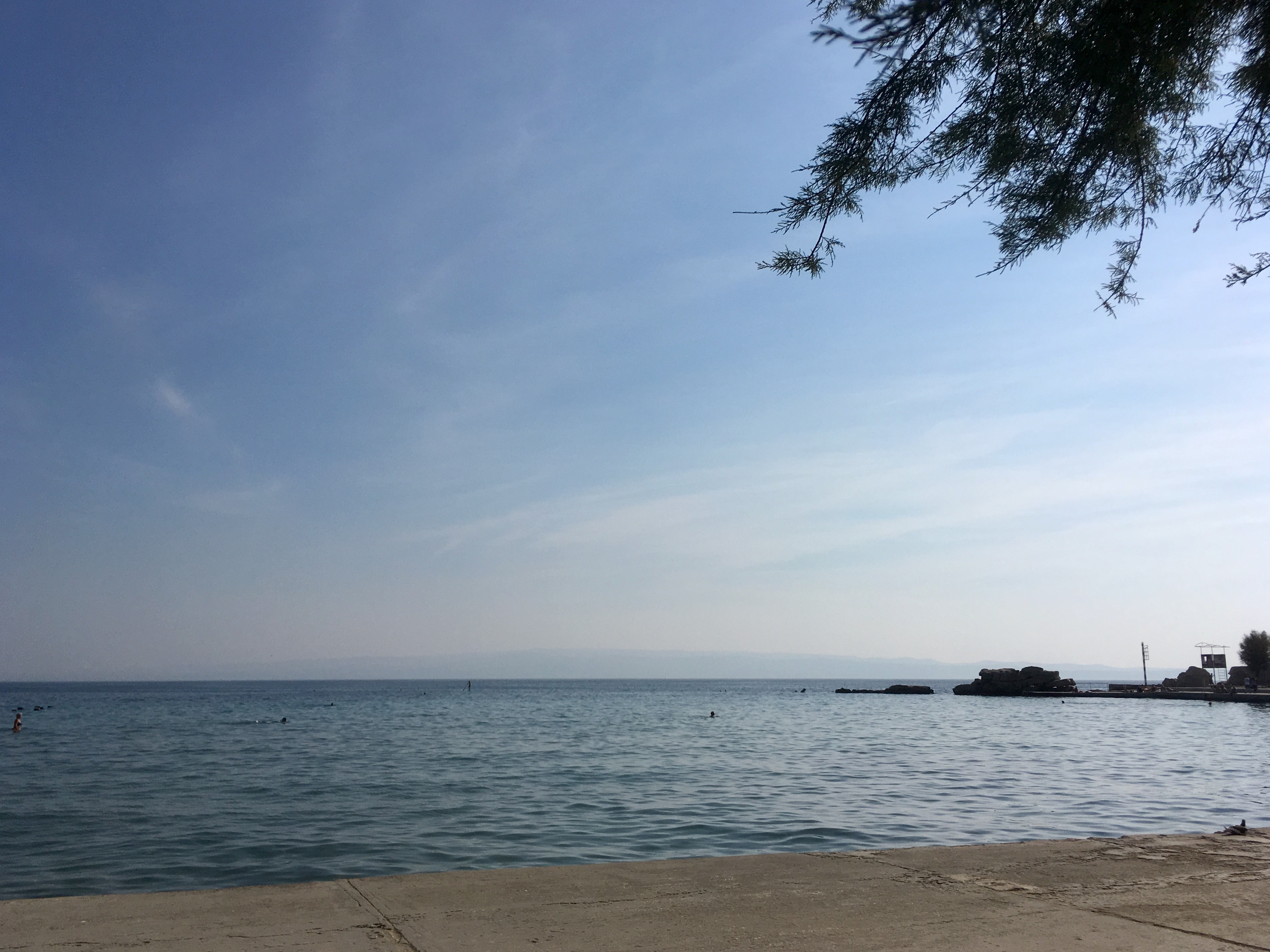 Wir verteilten die drei Schlafzimmer bzw. uns auf die Zimmer, richteten uns ein und ruhten kurz aus. Ich machte einen ersten Einkauf beim Konzum die Strasse runter und schließlich ging es los zum Meer, welches nur 5 Minuten entfernt lag.