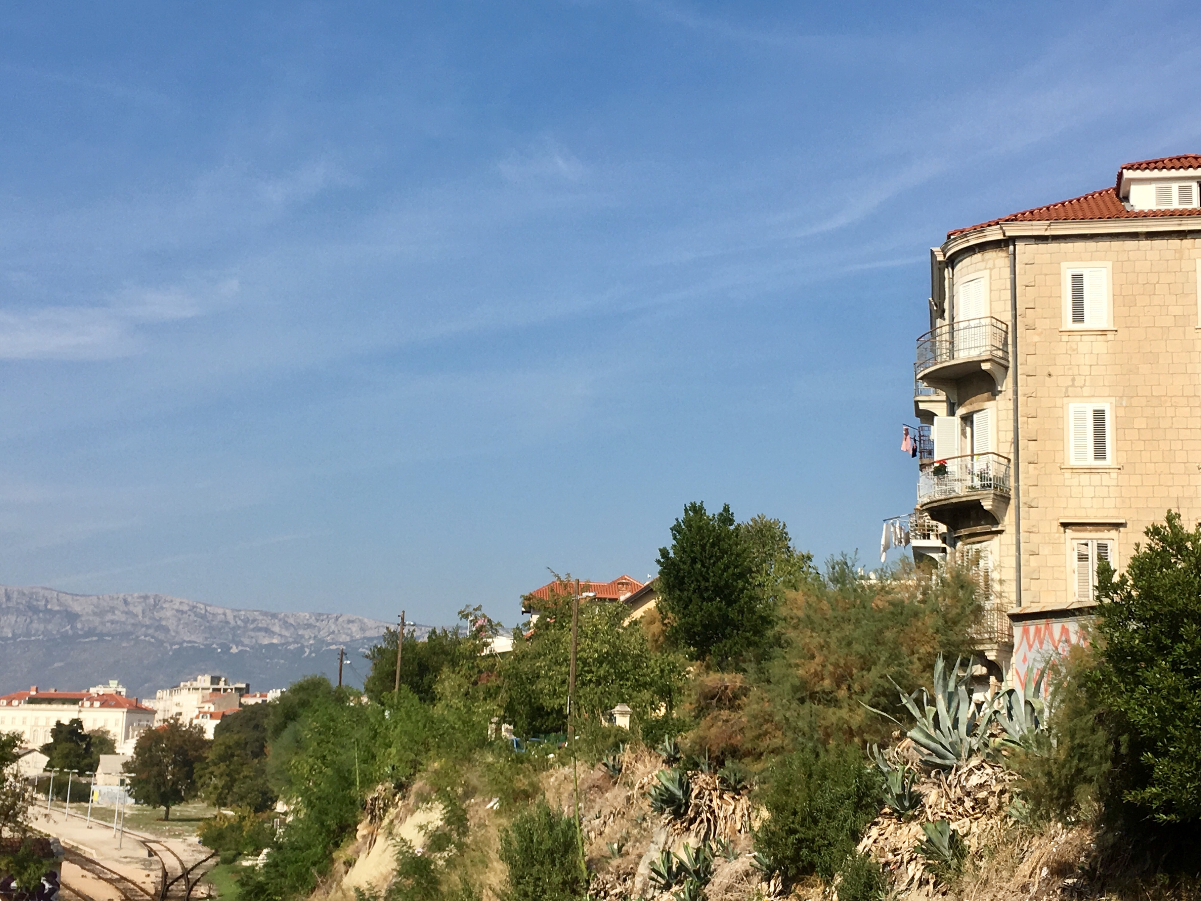 Vom Flughafen aus nahmen wir den Bus nach Split und kamen am Hafen an. Vor zwei Jahren ging es dann von dort an der Altstadt vorbei ins kleine Viertel dahinter. Nun gehen wir um den Bahnhof herum in die andere Richtung und gelangen nach 10 Minuten Fußweg zu unserem Airbnb Apartment.