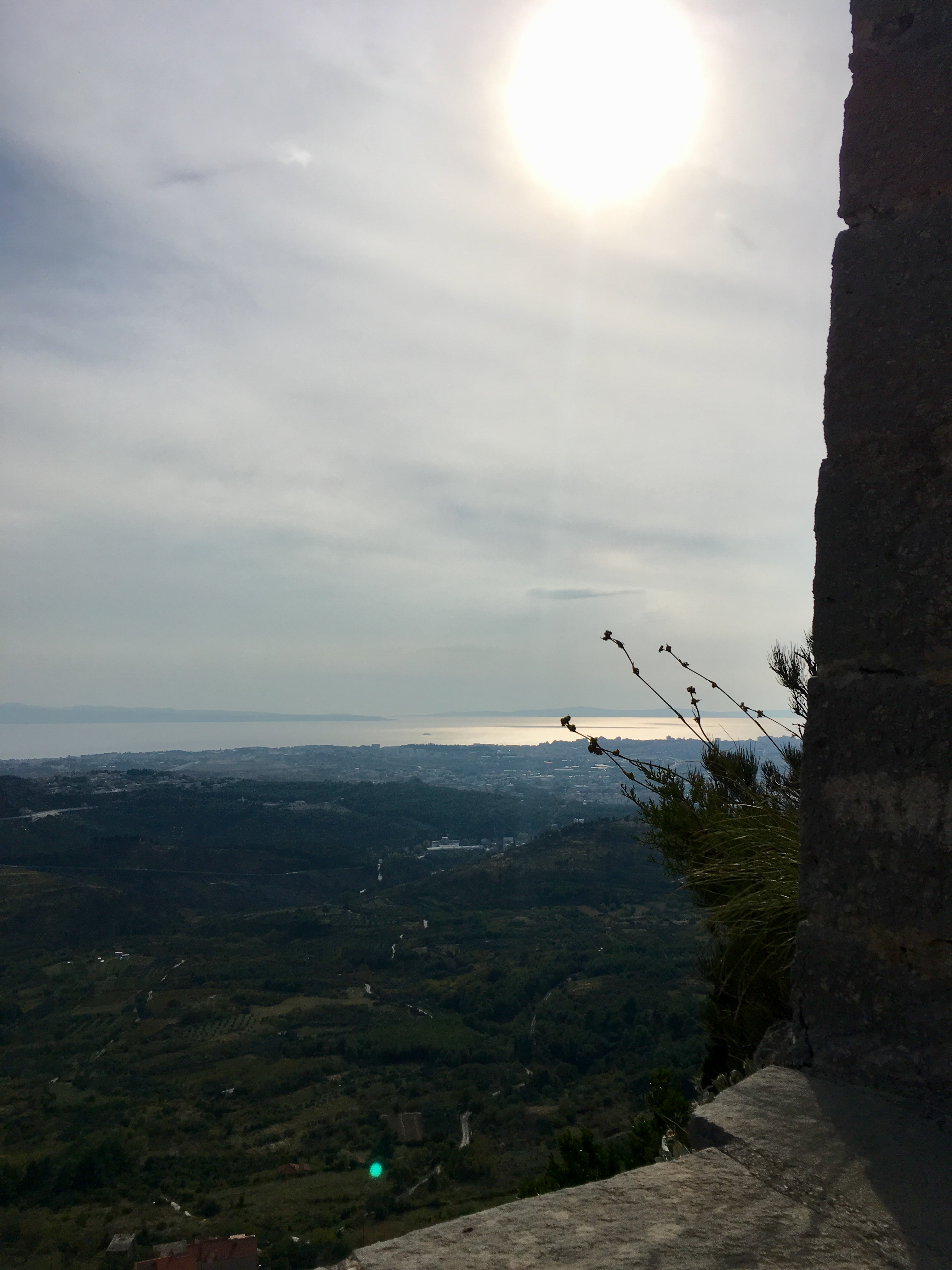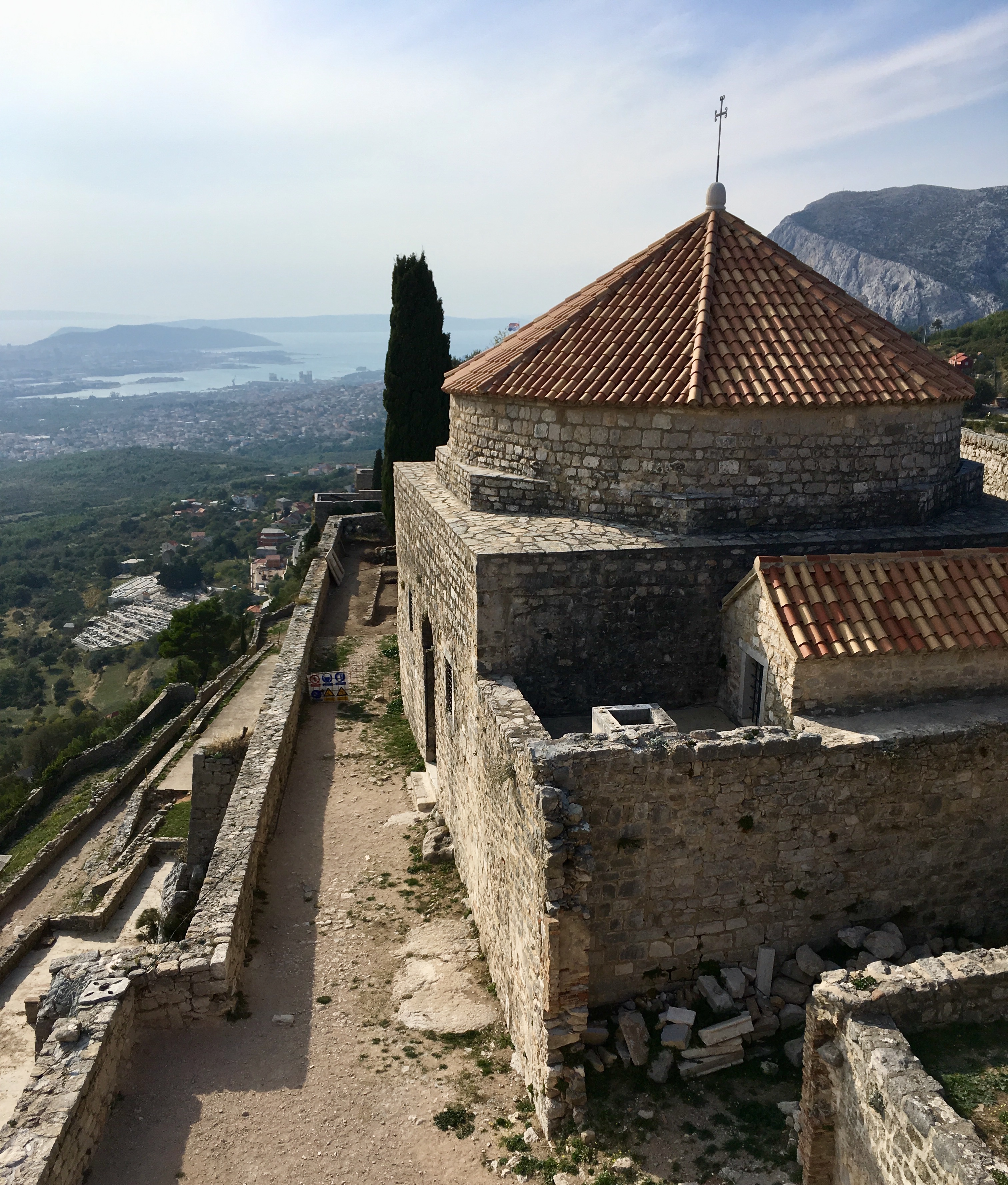Da die Strasse durch einen Tunnel führte, der mir schon vor zwei Jahren nicht geheuer war, beschlossen wir den „Geheimweg“ zur Burg zu nehmen. Im Örtchen Klis, setzten wir uns auf eine Bank mit Panoramaausblick und ruhten wieder lange aus.